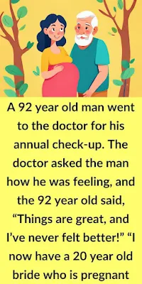 The doctor asked the man how he was feeling, and the 92 year old said, “Things are great, and I’ve never felt better!”